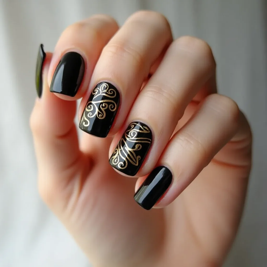 Glamorous Black and Gold Nail Designs for Evening Events