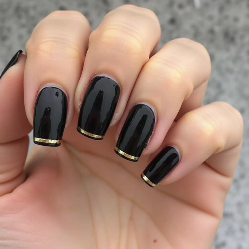Subtle Black and Gold Nail Designs for Work or Casual Wear