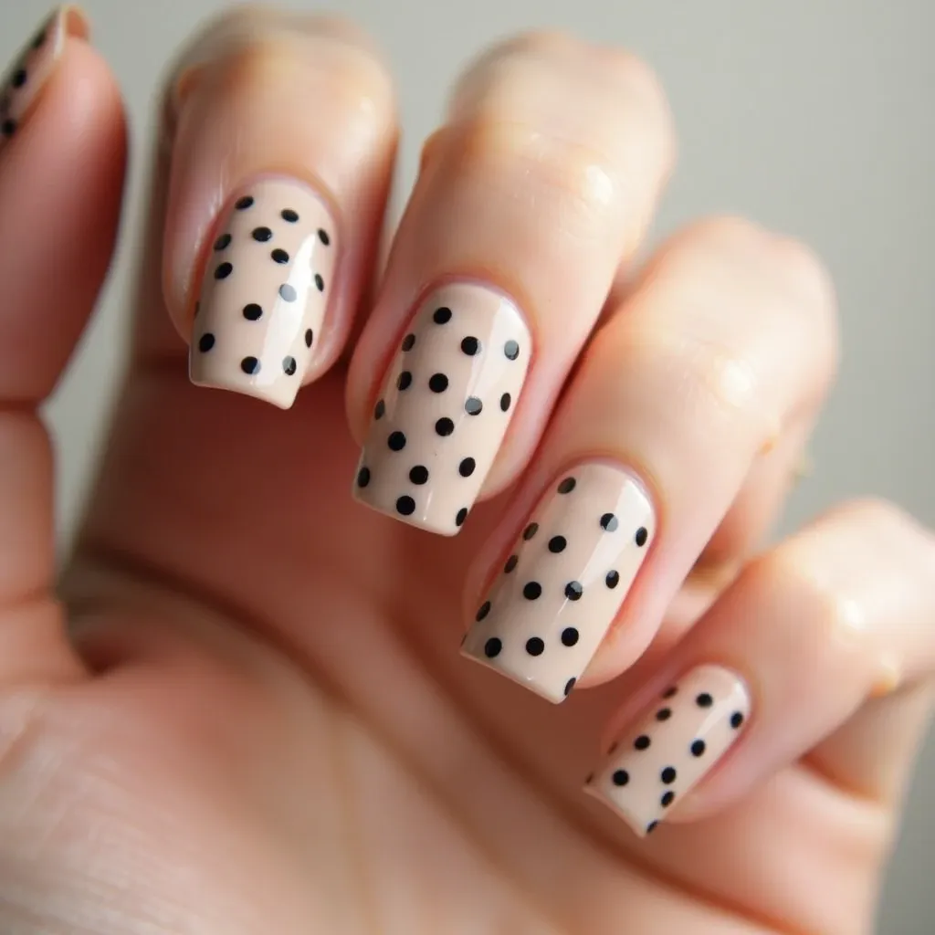 Dot black polish over a nude or clear base using a dotting tool or the back of a bobby pin. Subtle but statement-worthy.