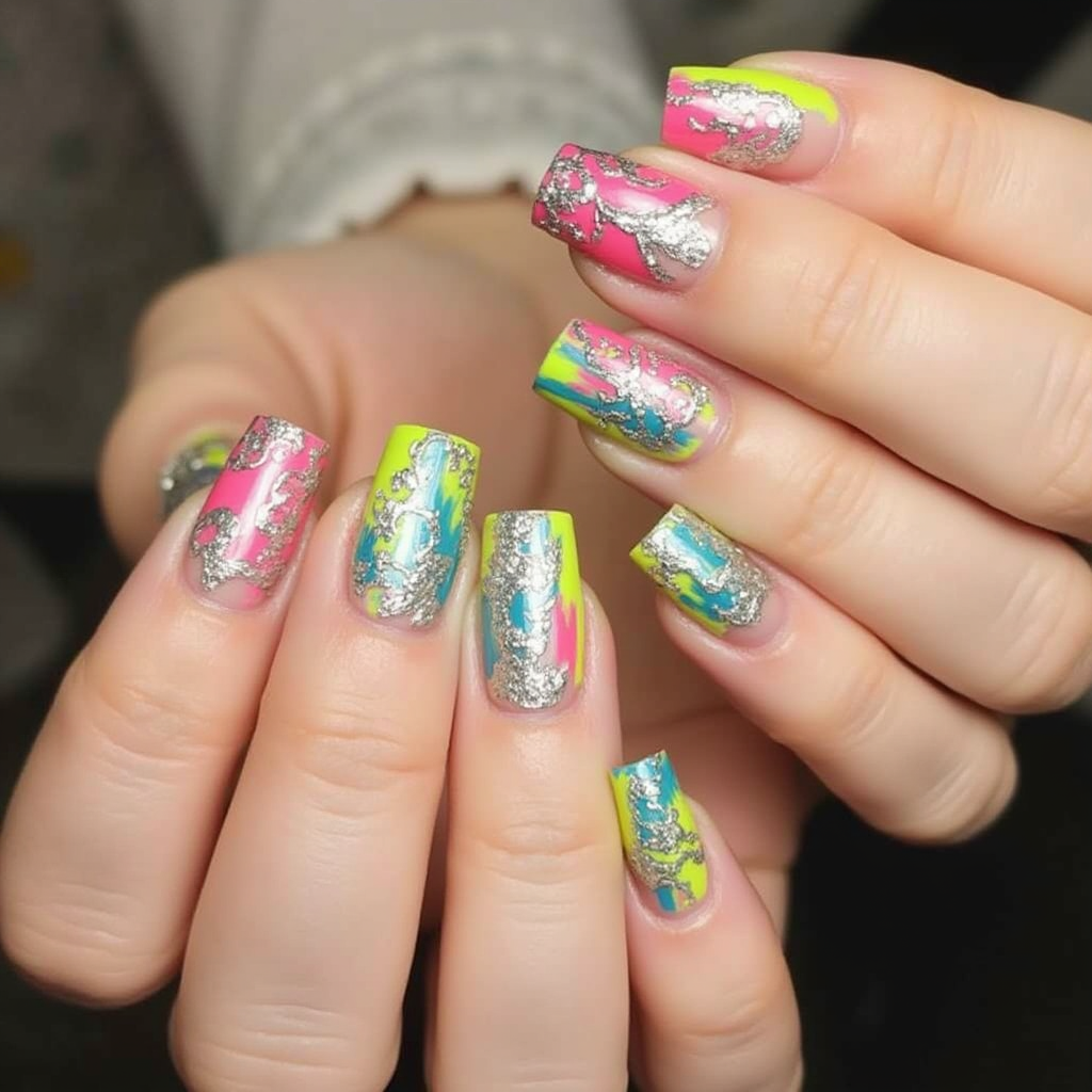 - Neon Shades: Bright neon pink, yellow, or green hues will make your nails pop, no matter where you go. Pair neon colors with geometric designs or ombre for a trendy, edgy look.