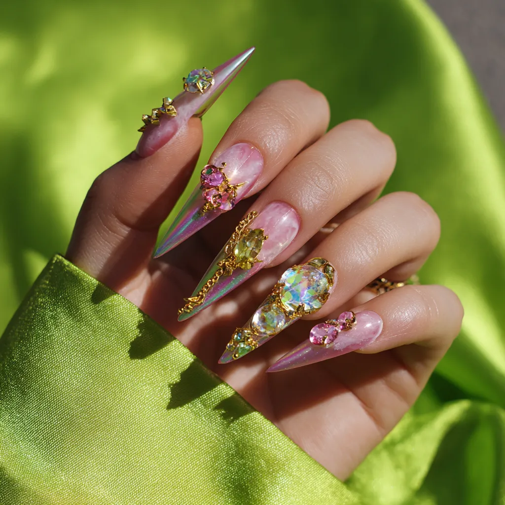 Beyond their dramatic pointed tips, stiletto nails are versatile. “They’re perfect for detailed and bold designs, but can also look elegant with a simple single color or classic nude,” says Denney, highlighting how the elongated shape provides a great canvas for intricate nail art.