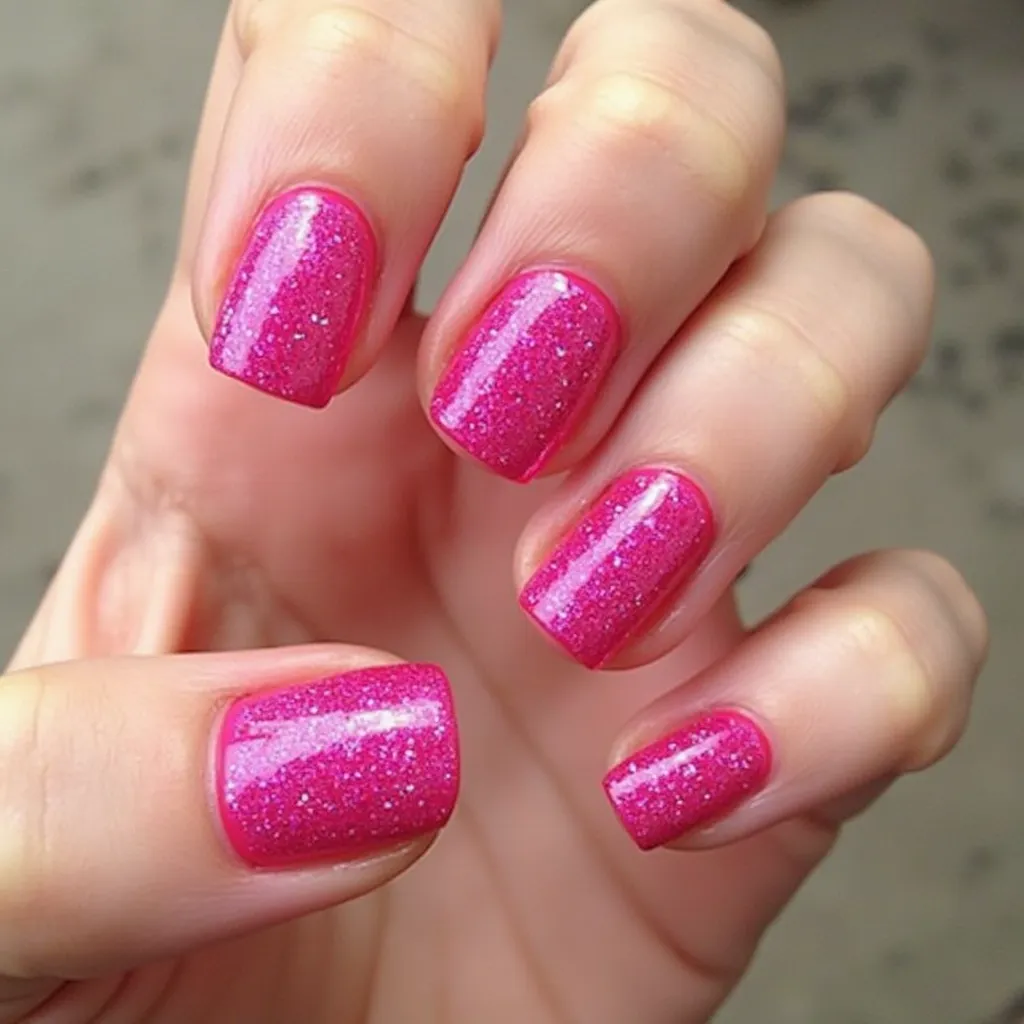 - How to Style: Apply a glitter polish over your hot pink base or opt for glitter accents on the tips of your nails for a French-tip look with a twist.