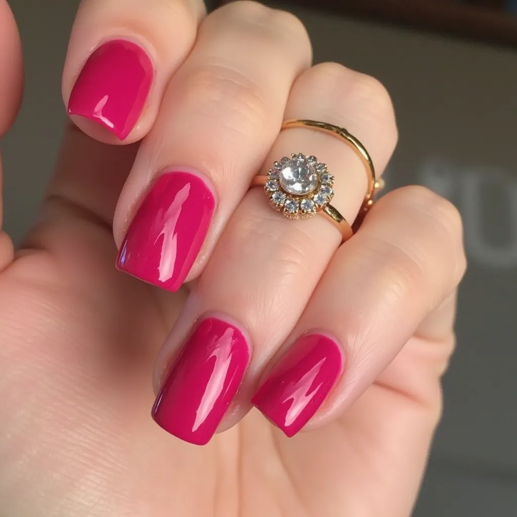 - Tip: Use a glossy top coat for an extra shine that makes the hot pink pop even more.