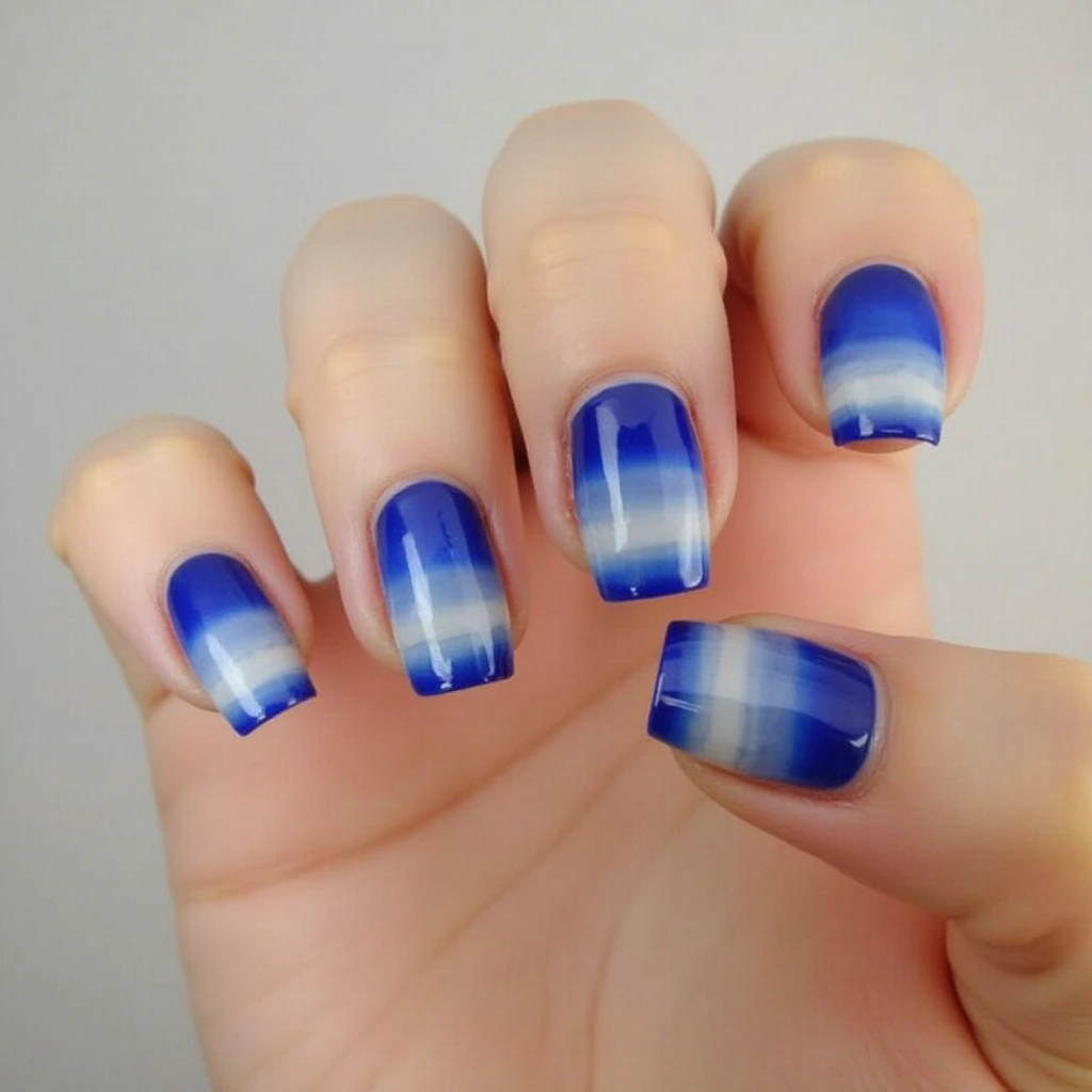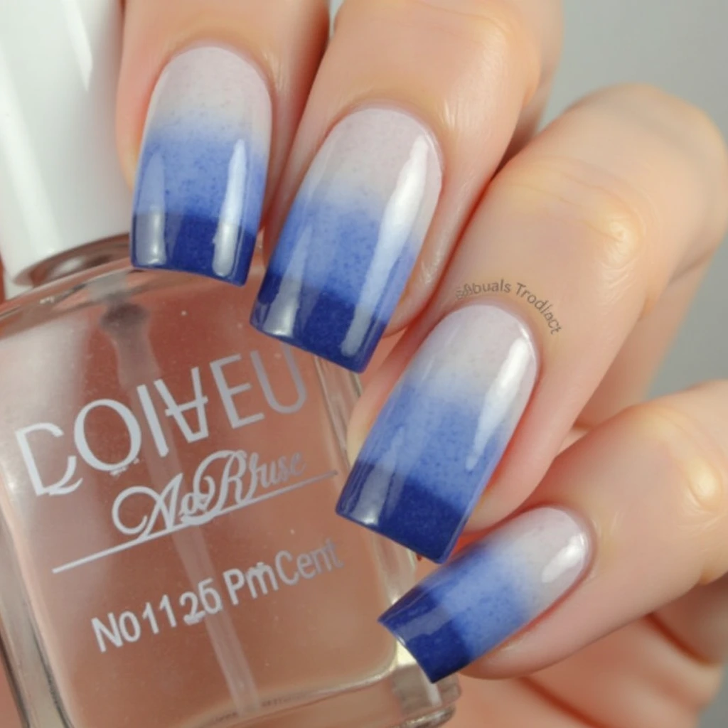 - Apply the darker blue at the tip of the nail using a sponge. Then, gently dab the sponge over the lighter shade to blend them together.