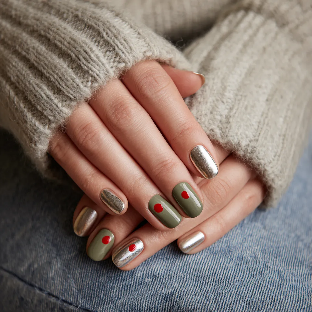 Capture the vibe of a classic dirty martini with nails featuring chrome silver “glasses” and a full hand of olive accents. To make it your own, swap out the olives for your favorite cocktail twist—think lemon drops, espresso martinis, or cosmopolitans for a fun, personalized touch.