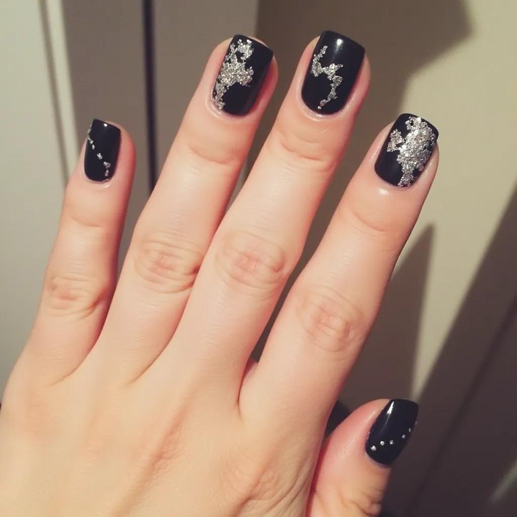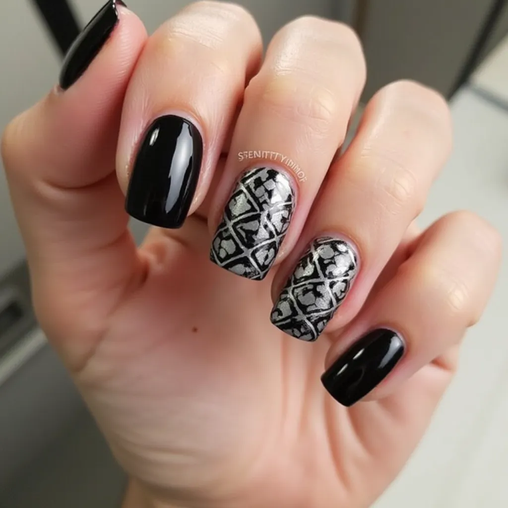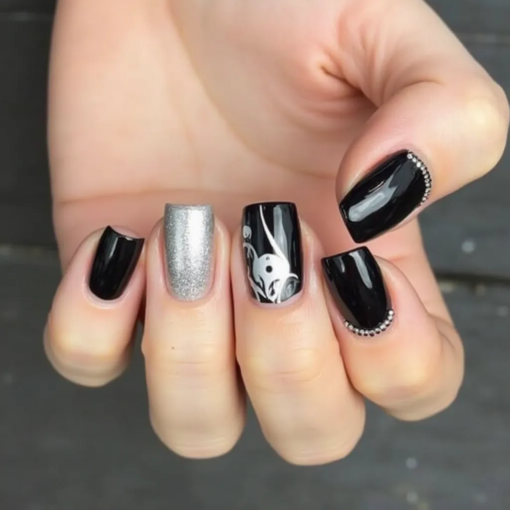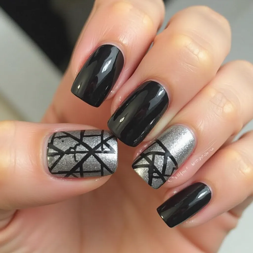 black and silver nails