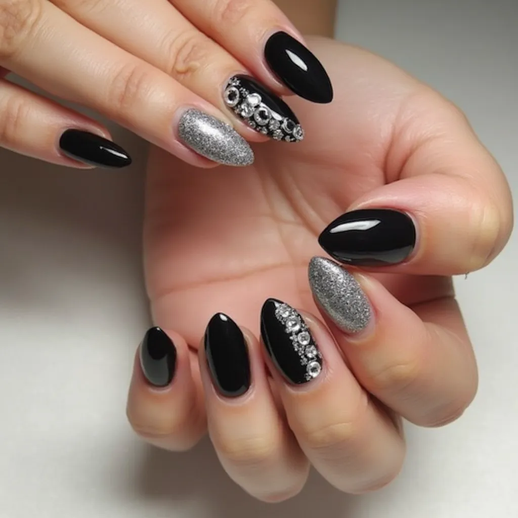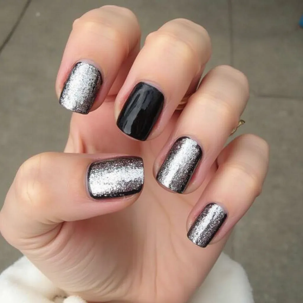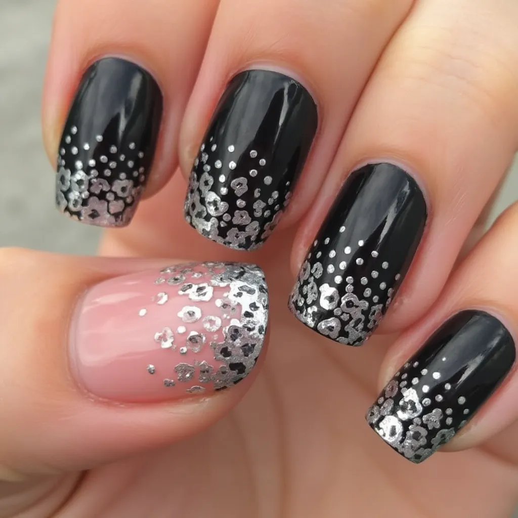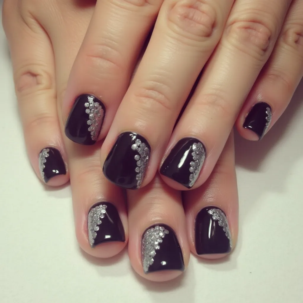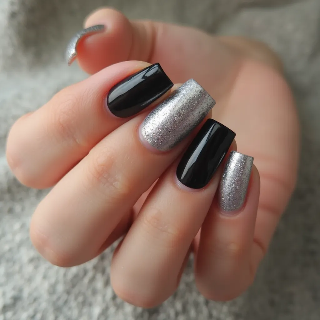 black and silver nails