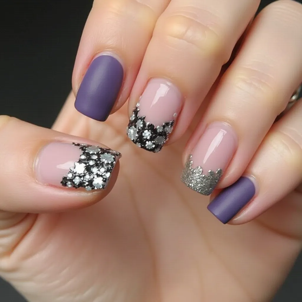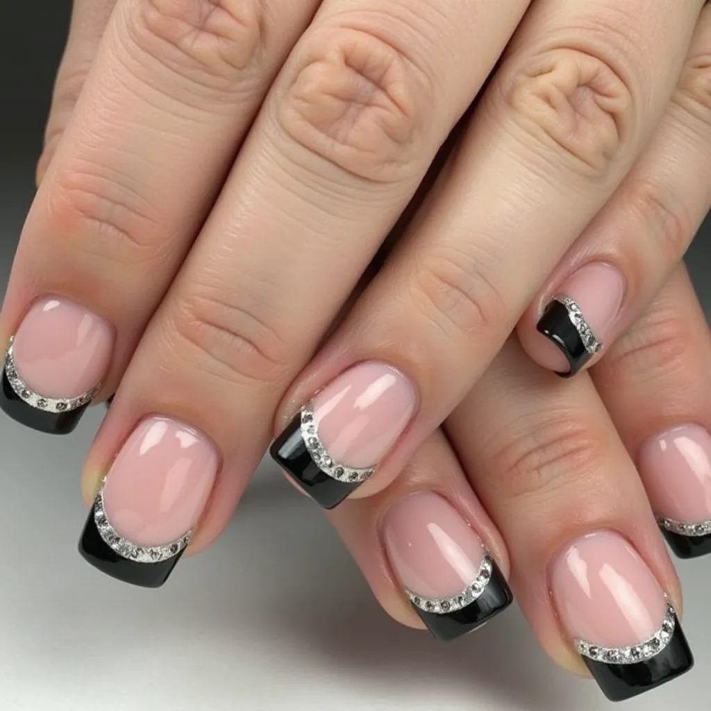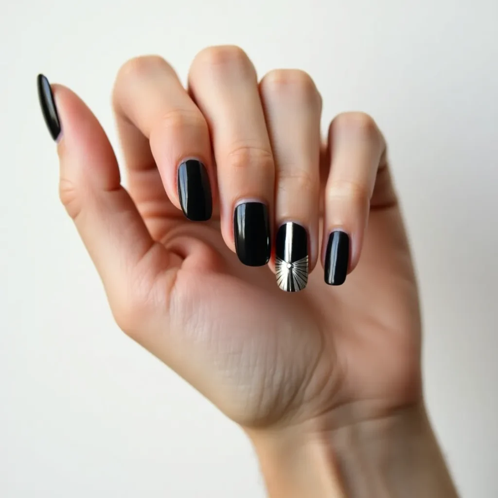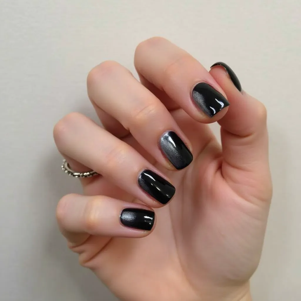 black and silver nails